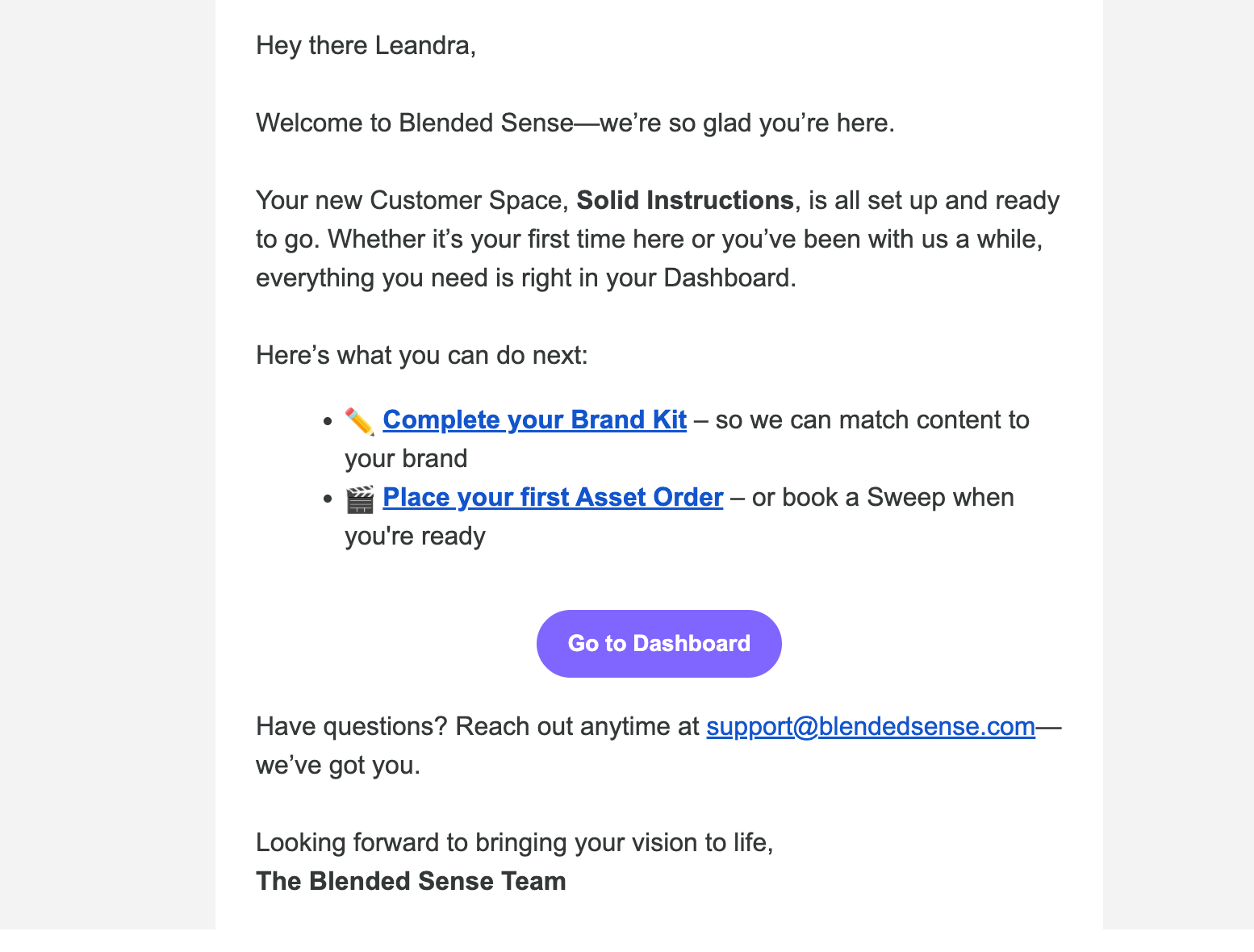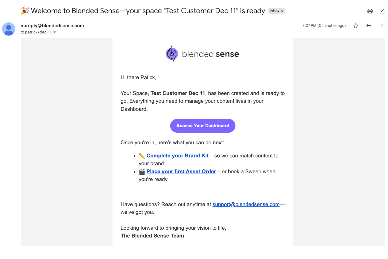 - Confirm the email address with your internal admin or Blended Sense contact.