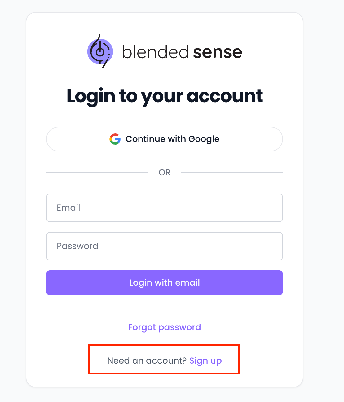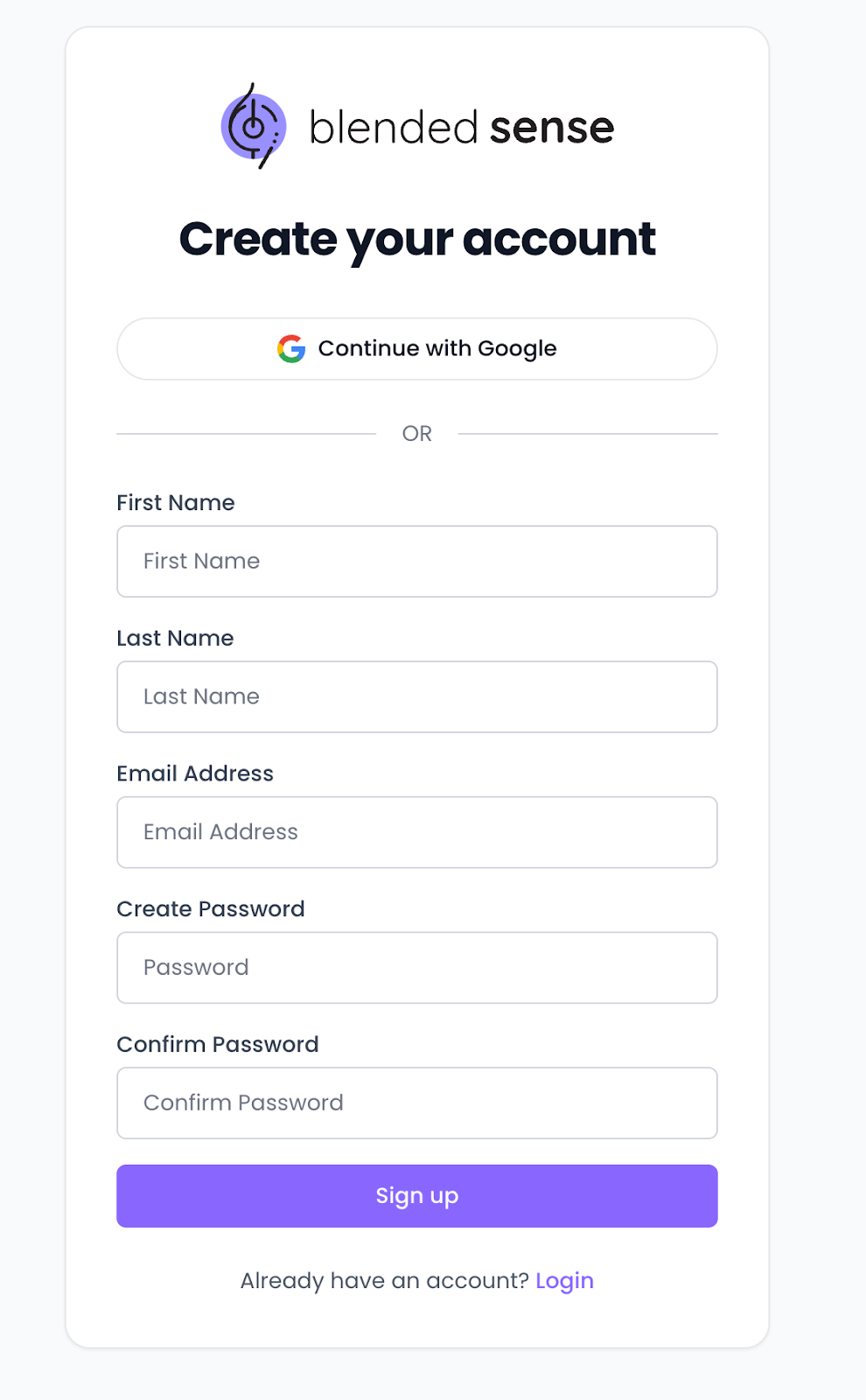 - Navigate to the Blended Sense Sign-Up Page