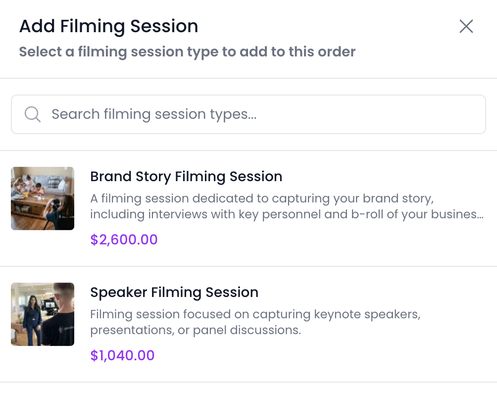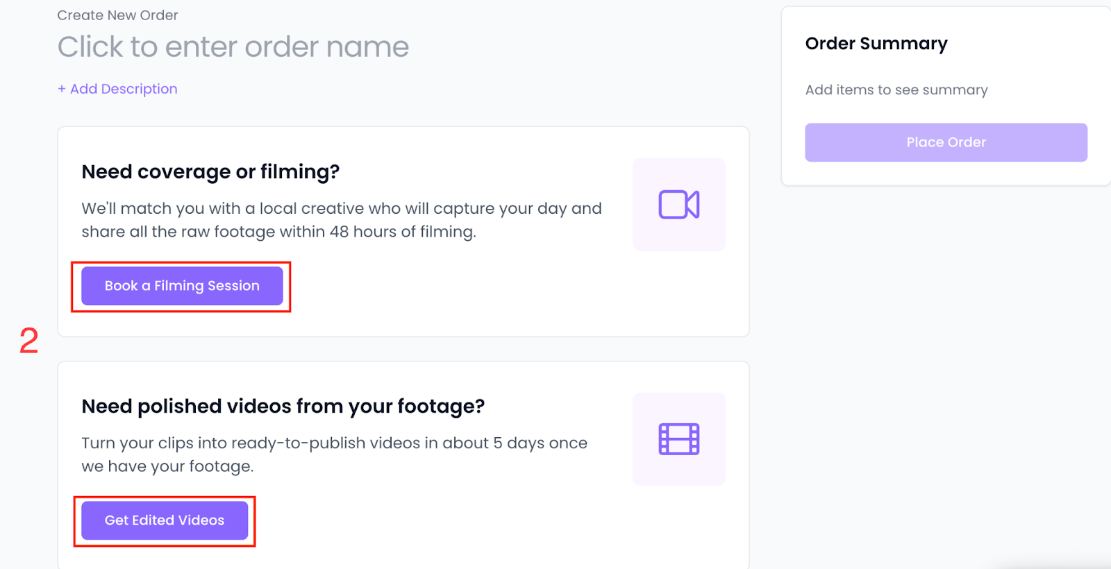 - Select Book a Filming Session or Get Edited Videos