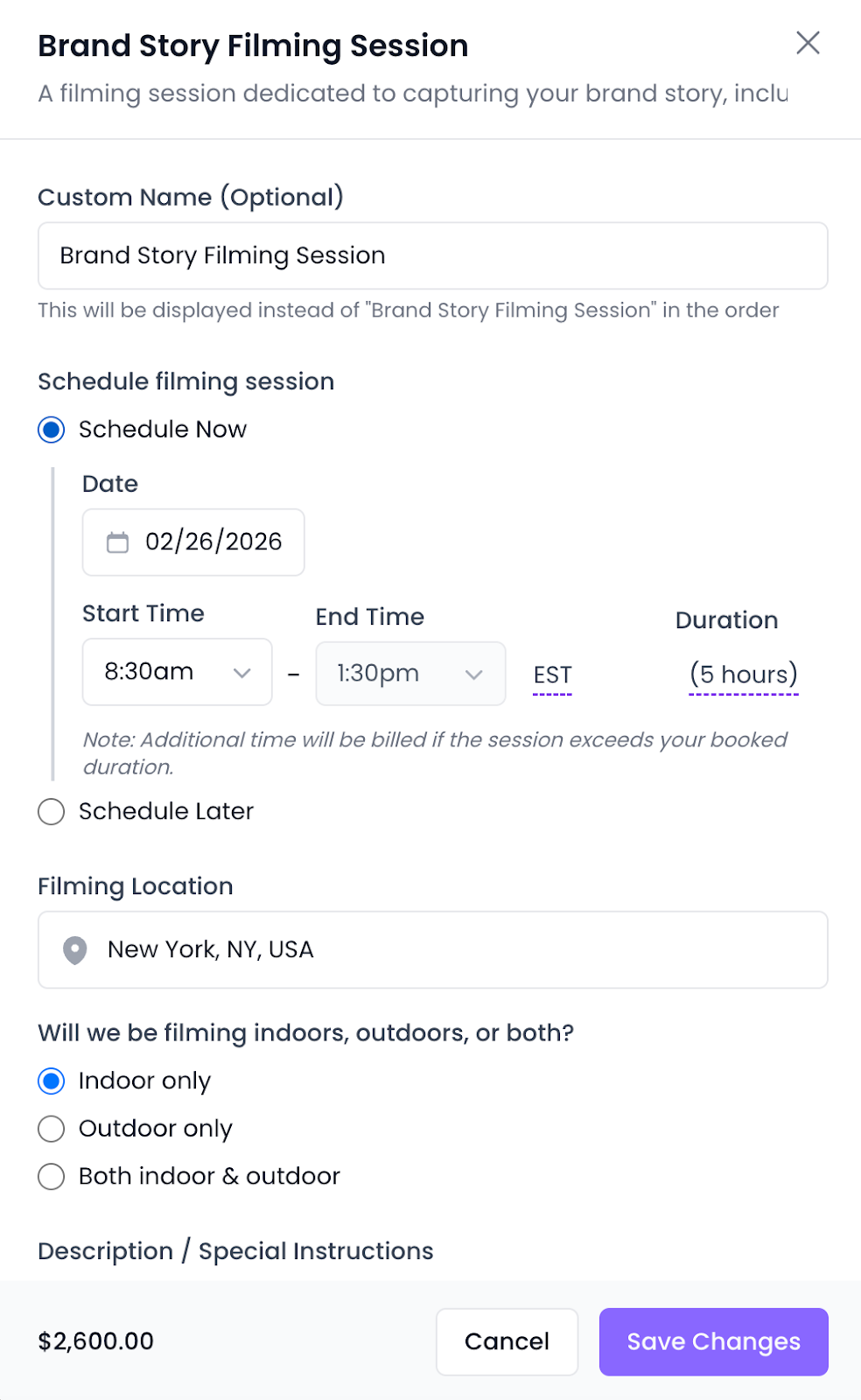 - You know whether you want Filming or Filming + Editing